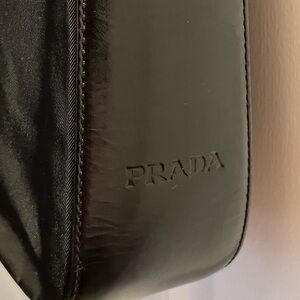 EUC! This elegant black nylon/leather trim hobo style shoulder bag is perfect for any occasion. Its sleek design and high-quality material make it a must-have accessory. Gorgeous archived vintage PRADA hobo style TESSUTO hobo shoulder bag with metal handle with leather trim top. Minimalist style from 1990’s. RARE BAG! I cannot find many comps on her but she’s a beauty! Sleek minimalist style zip top closure and inside pockets. Metal hardware engraved with the Prada logo. More pics coming soon! Check back by Monday February 23! Number 7 inside not sure what that represents - probably the factory. very clean bag and the metal handle is topped with genuine smooth calf leather- COA comes with and unbranded dust bag