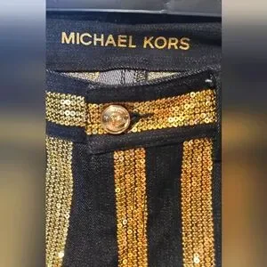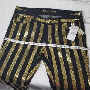 NWT MICHAEL KORS-size 4 -striped -gold sequins pants - skinny jeans
