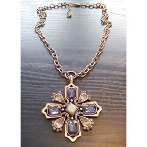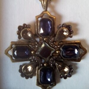 Keywords: cross pendant, necklace, vintage jewelry, antiqued gold, purple rhinestone, statement necklace, religious jewelry, costume jewelry, fashion necklace, gift for her, adjustable chain, faceted stones, art deco style, cross necklace