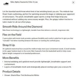 Nike Alpha Huarache Elite 4 Low, Nike Metal Baseball Cleats, Nike Baseball Shoes, Nike cleats, Nike Men