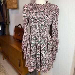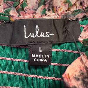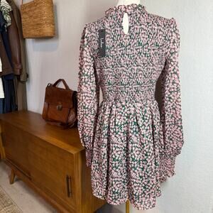 Women's Lulus Pink and Green Floral Smocked Top Long Sleeve Dress Size L NEW