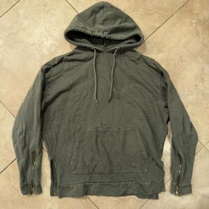 Soft olive green long sleeve top by Love featuring a gold ring zipper detail at the chest. Lightweight, stretchy fabric with a flattering relaxed drape and subtle seam detailing across the back. Versatile piece that can be worn zipped up or slightly open for layering. Made in Egypt. Gently worn with no holes or stains noted.