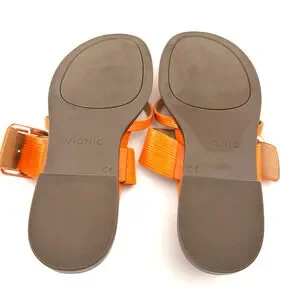 Keywords: Vionic Sandals, Orange Sandals, Leather Sandals, Buckle Sandals, Thong Sandals, Comfort Sandals, Arch Support, Summer Shoes, Beach Sandals, Casual Flats, Womens Size 7.5, Vionic Julep, Bright Orange