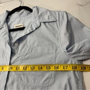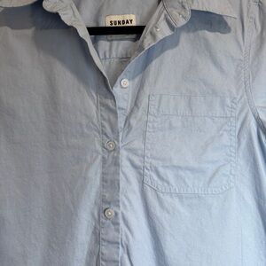 Sunday Best Aritzia Size Small Light Blue Cropped Button Down Shirt Short Sleeve Cotton Collared Blouse Minimalist Capsule Top