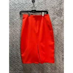 Bright Orange Pencil Skirt with Side Slit Business Casual Office Wear Size S