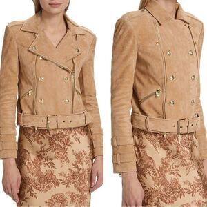 L’AGENCE $1595 Billie Belted Suede Biker Jacket in Capuccino Suede *miss…