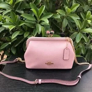 COACH C1451 Nora Kisslock Crossbody Shoulder Bag Kisslock Closure Pebbled Leather Pink