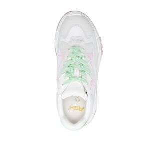 white/multicolour calf leather panelled design front lace-up fastening embroidered logo to the front round toe branded heel counter chunky rubber sole
