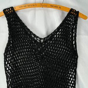Black Crochet Midi Dress Fringe Boho Sheer Beach Cover Up one size