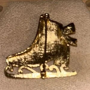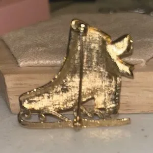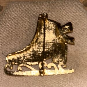 Vintage Gold Tone Rhinestone Ice Skate Brooch Winter Holiday Pin
