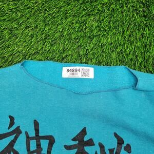Chinese Hanzi Sweatshirt, Vintage Crop Sweatshirt, Womens XL Retro Sweater, Rare Made in USA Top, 90s Cut-Off Sweatshirt, Asian Inspired Streetwear, Oversized Cropped Sweatshirt, Y2K Graphic Fashion, Single Stitch Sweatshirt, Retro Urban Apparel
