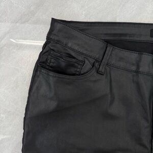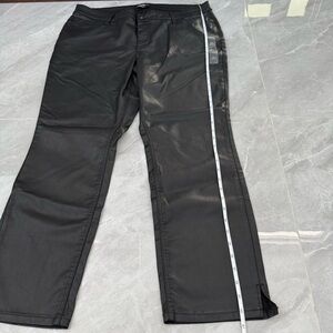 New without tags - NWOT Women’s Edgely By Maurices High Rise Slim Faux Leather Pants Plus Size. Has three front pockets, two back pockets, and zipper with button closure. Color: black. Size: 20W regular.