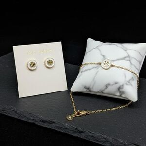 Tory Burch white enamel gold icon earrings and bracelet set (size7.5) #luxury #jewelry #toryburchset #jewelryset