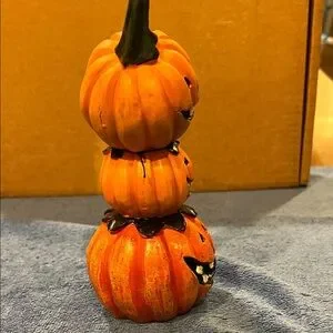 Add a festive touch to your home with this stacked pumpkin Halloween decor. Featuring vibrant orange pumpkins with cheerful faces, it's perfect for creating a spooky yet fun atmosphere.