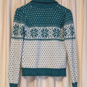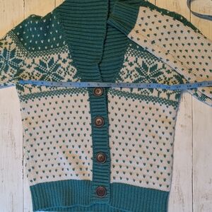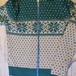 Bluenotes Nordic Shawl Collar Teal and Cream Patterned Cardigan - Women's Med