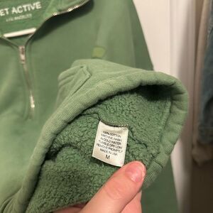 Set active half zip in lucky. Tiny hole that’s hardly noticeable and small stain on front that might come out in wash. See photos!