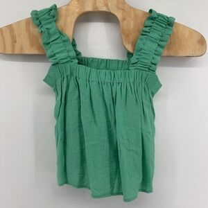 Green Ruffle Strap Textured Gauze Tank Top Small
