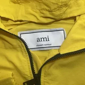 Ami Alexandre Mattiussi 1/4 Zip Ripstop Hooded Windbreaker Men Yellow Designer