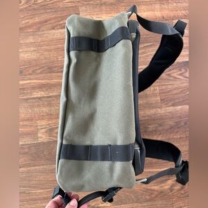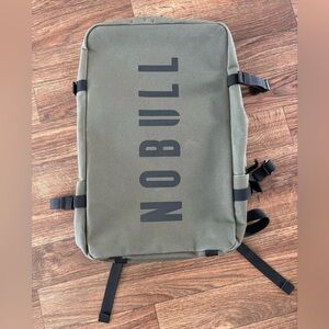This is a used Nobull waxed canvas backpack in army green.