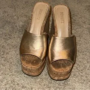 Step out in style with these elegant gold wedge sandals. Perfect for any occasion, they offer both comfort and sophistication.