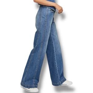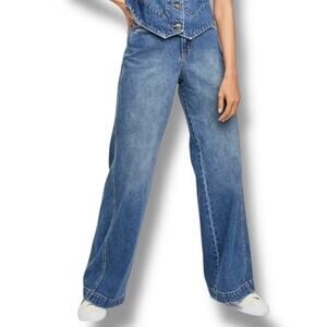 Free People We The Free Modern Meadow Denim Wide Leg Jeans Women's L Blue