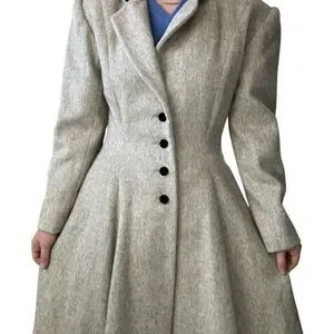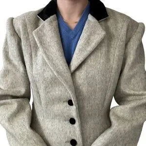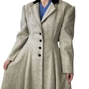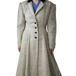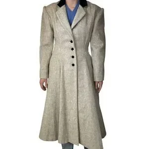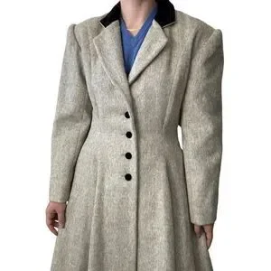 Vintage Womens Cullinane Gray Wool Bow Waist Velvet Collar Trench Coat Jacket S