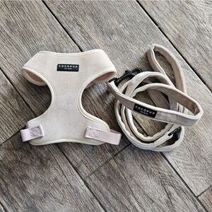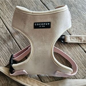 Cocopup Luxe Velvet Adjustable Neck Harness and Leash Set - Champagne Size XS