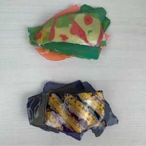Vintage 90s Postmodern Brooches Pins Set of 2 Handmade Paper Mache Acrylic