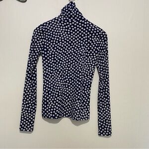 J CREW Women's Blue Floral Long Sleeved Matte Jersey Turtleneck Shirt Sz XS