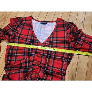 Elegant red and black ruched dress perfect for any occasion, offering both comfort and style. Made from a soft polyester blend with a hint of stretch for a flattering fit.