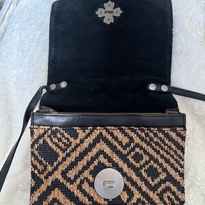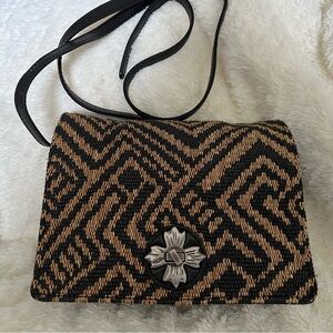 Patricia Nash Black and Tan Handcrafted Straw and Leather Crossbody Bag 9x61/2