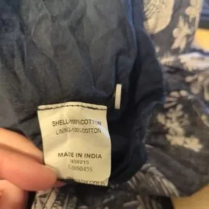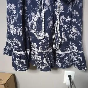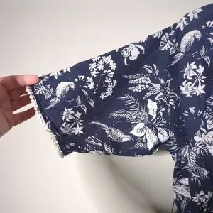 Navy with white floral and bird design