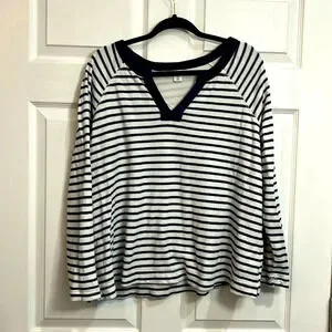 This preowned blue and white top from Old Navy is made from 100% cotton and features a v-neck and long sleeves. The top has a slight piling due to gentle use, but is still in good condition and perfect for casual wear.