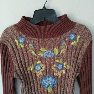 Sundance Women's Sweater Size Small Floral Embroidered Pullover Long Sleeve