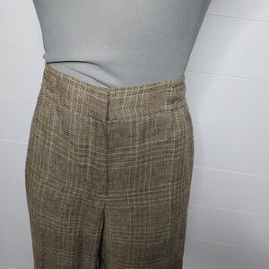 Gorgeous lightweight woven linen trousers with houndstooth design. Stretchy partially elasticated waistband. zipper closure. In excellent condition. 100% linen with viscose blend partial lining.