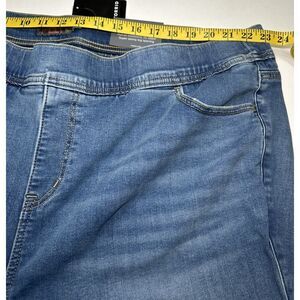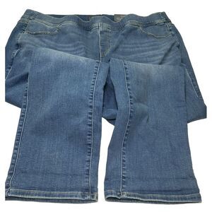 Elevate your denim game with these NWT Torrid Lean Jeans. These jeans are not only super soft but also stretchy and feature a high-rise waist for a slimming effect. The solid medium blue color complements the skinny style and pull-on closure, making them perfect for any season.