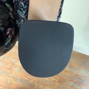 This is a beautiful pair of ankle boots that are crafted in Italy. The booties are pointed toe and a interior zipper for easy on and off. The leather is black and snake embossed with a beautiful floral print. The snake embossed gives this booties a edgy look with a dark romantic floral print and a black patent leather covered block heel.