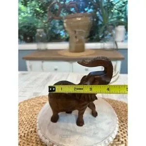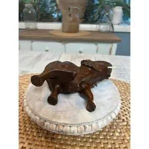 Vintage hand carved elephant with tusks.