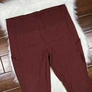 Athleta Women's Size 16 Cognac Brown Trekkie Hybrid Crop Tight Pull On Pants, Style # 446615-03, 95% Nylon 5% Spandex, Stretch, Elastic Waist, Side Leg Pocket, Back Waistband Pocket, Interior Drawcord