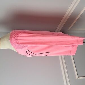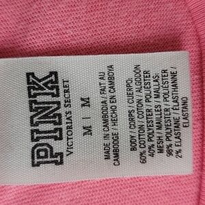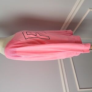 PINK VICTORIA'S SECRET Neon Pink Mesh Shoulder Logo Print Long Sleeve T-Shirt M