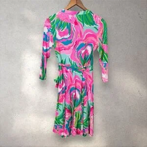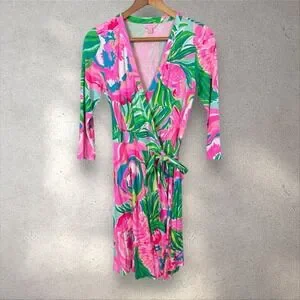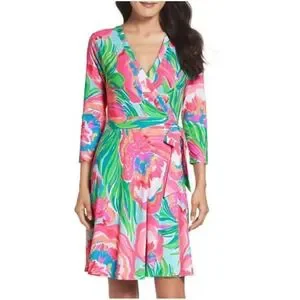 Lilly Pulitzer Emilia Wrap Dress Paradise Bound Beach Stretch Floral Sz S