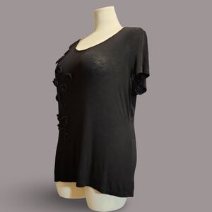 Forever Women Soft And Comfortable Sheer Tshirt With Floral Applique Grunge Goth