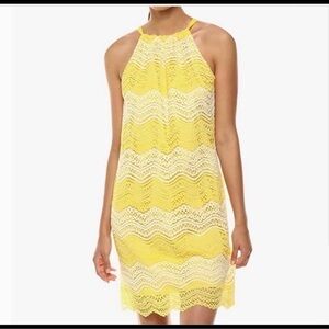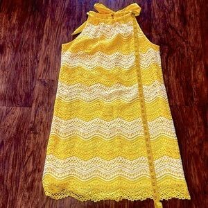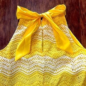 Like New Trina Turk yellow & white lace Bow Halter dress Large