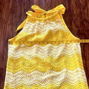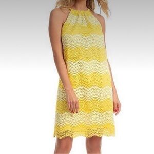 Like New Trina Turk Yellow and White Lace Bow Halter dress Large