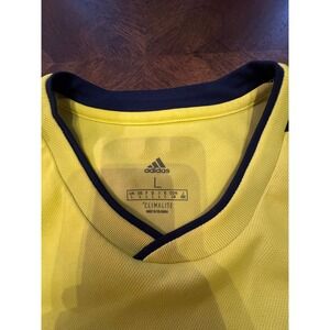 Keywords: Adidas, Colombia, Soccer Jersey, Football Shirt, Yellow, Climalite, Short Sleeve, Athletic, Sportswear, Fan Apparel, National Team, L