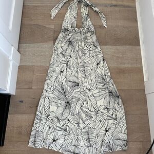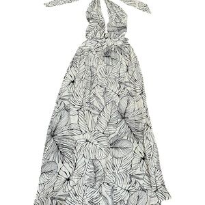 Elegant backless dress with a bold leaf design. Perfect for stylish outings.
