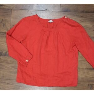 J Crew Womens Sz M/4P 3/4 Sleeve 100% Linen Top Shirt