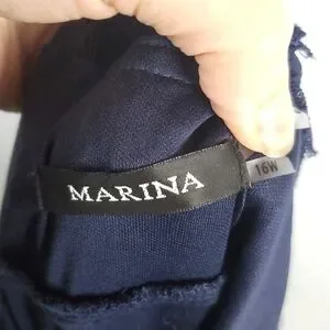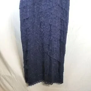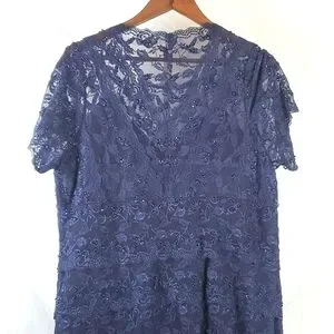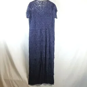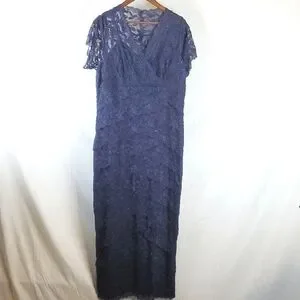 Marina navy blue tiered floral lace dress with beaded accents. Sheer sleeves. Slit in back. Great condition. Size 16W.
