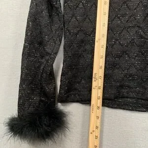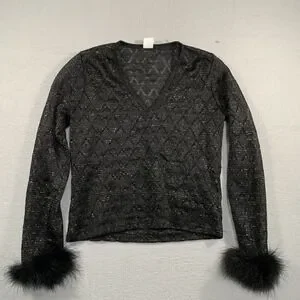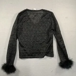 The R-Wear Rampage Clothing Co Made in USA Women's Black Long Sleeve Sheer Top in size M is a stylish and elegant blouse perfect for various occasions such as weddings, parties, or casual wear.