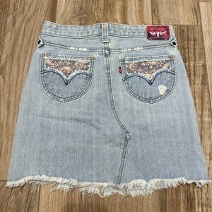 Levi's Jeans Denim Cut Off Skirt Paisley Patches Distressed